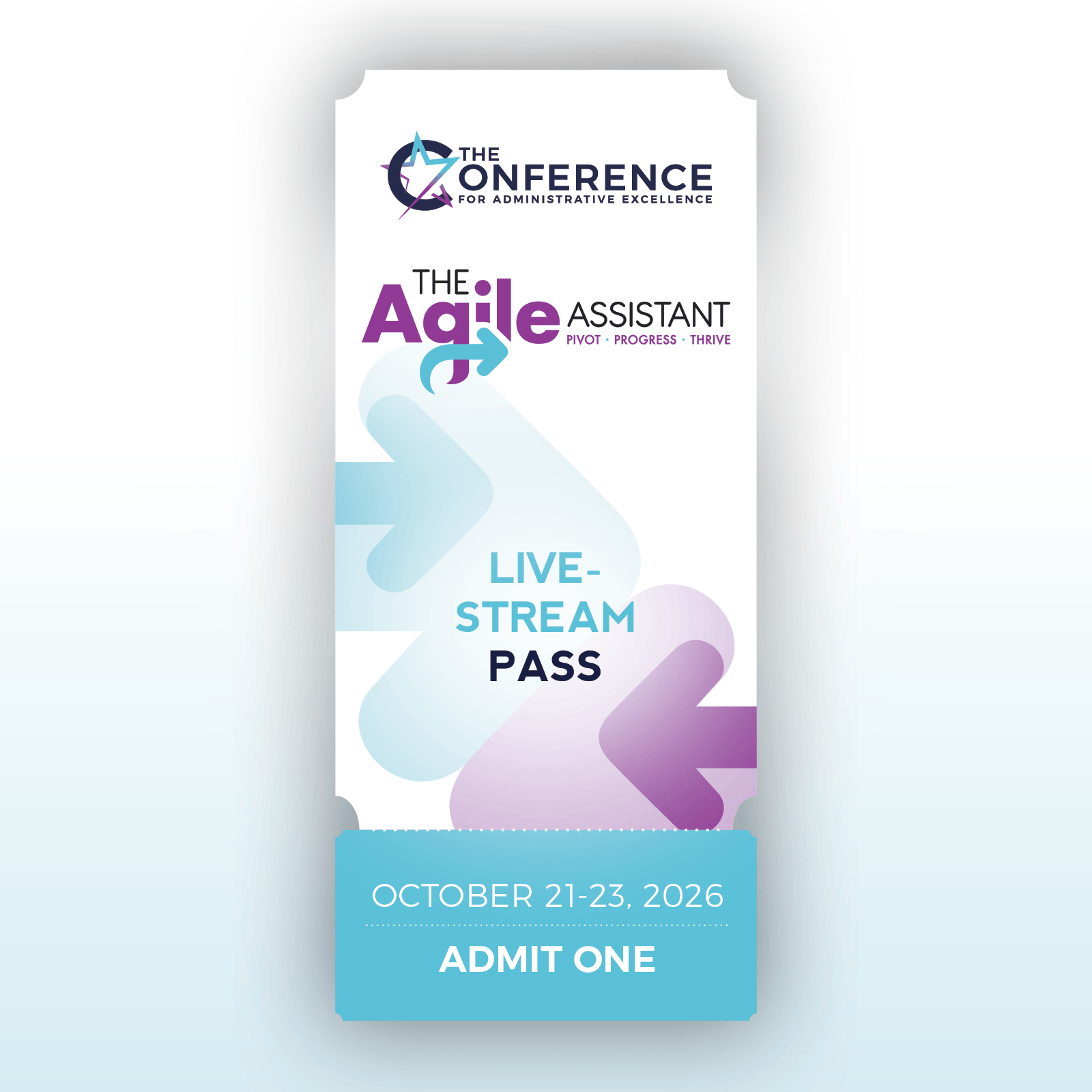 Join the 2026 Conference for Administrative Excellence live from anywhere with our Live-Stream Pass. Experience The Agile Assistant: Pivot, Progress, Thrive in real time and gain the skills, strategies, and confidence to excel in today’s fast-changing workplace. Includes 30-day recording access, with an option to extend to three months.
